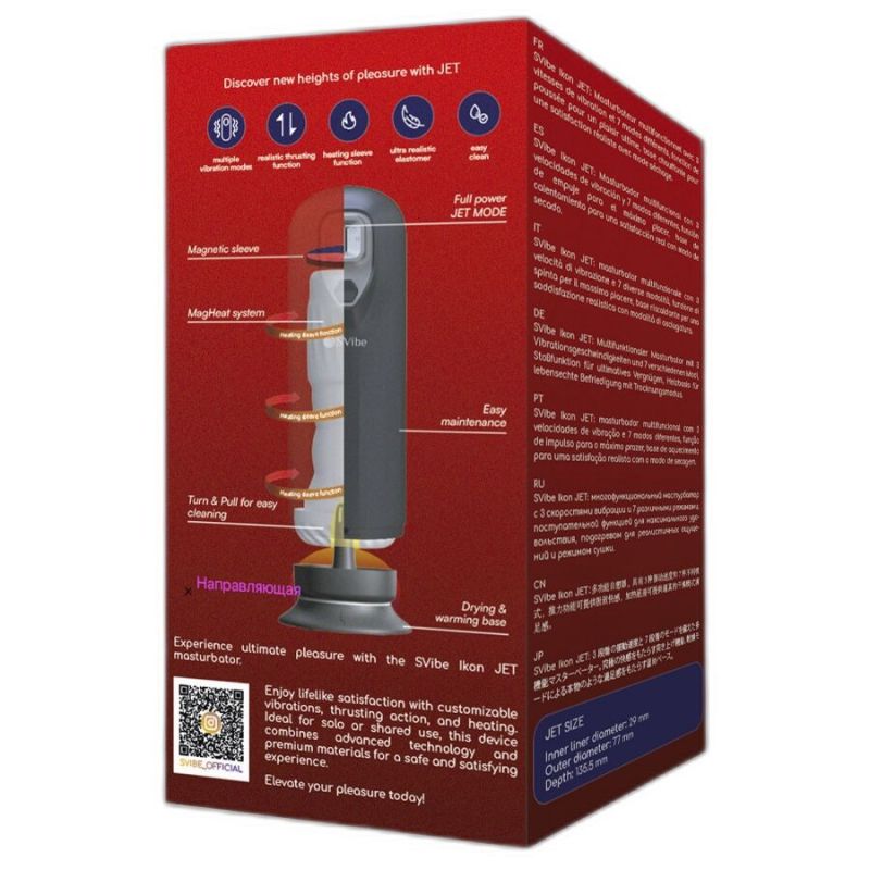 El SVibe Ikon JET ha sido diseñado para ofrecer una experiencia de placer intensamente realista, combinando tecnologías avanzadas que se adaptan a tus deseos con total precisión. Sus vibraciones personalizables y su potente función de empuje trabajan en conjunto para crear sensaciones profundas, dinámicas y totalmente envolventes.