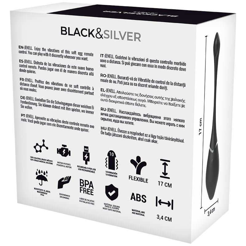 La bala de silicona control remoto Jenell de Black&Silver te brinda puro placer. Con el juguete negro y sexy resulta absolutamente imposible resistir la tentación por mucho tiempo.